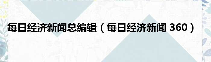 每日经济新闻总编辑,每日经济新闻 360很多人还不知道,今天乐天来为大家解答以上问题,现在让我们一起来看看吧!