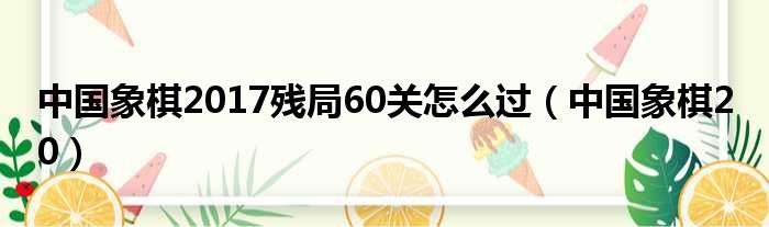 中国象棋2017残局60关怎么过(中国象棋2 0)