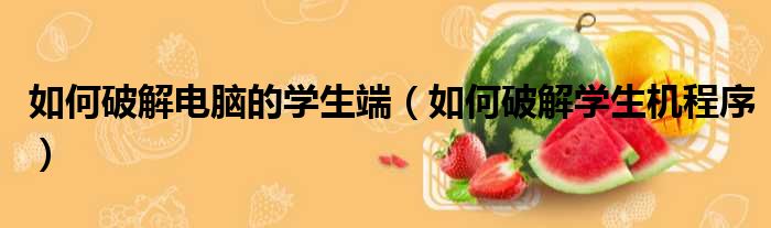 如何破解电脑的学生端(如何破解学生机程序)