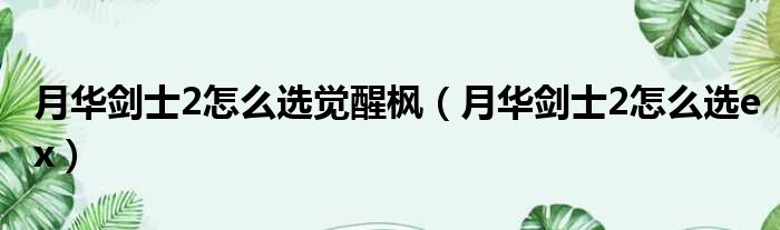 月华剑士2怎么选觉醒枫(月华剑士2怎么选ex)