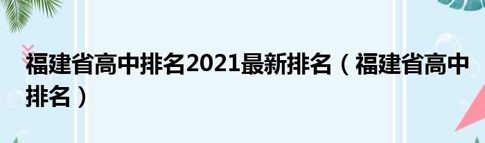 导读 大家好,今天小六子来为大家解答以下的问题,关于福建省高中排名2021最新排名,福建省高中排名这个很多人还不知道,现在让我们一起来看看吧