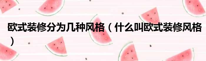 欧式装修分为几种风格(什么叫欧式装修风格)