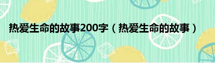 大家好,今天小六子来为大家解答以下的问题,关于热爱生命的故事200字,热爱生命的故事这个很多人还不知道,现在让我们一起来看看吧!