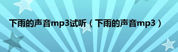 大家好,今天小六子来为大家解答以下的问题,关于下雨的声音mp3试听,下雨的声音mp3这个很多人还不知道,现在让我们一起来看看吧!