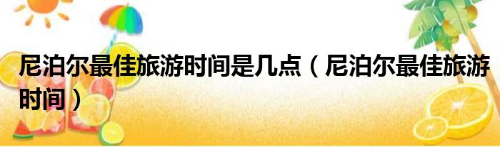 尼泊尔最佳旅游时间是几点(尼泊尔最佳旅游时间)