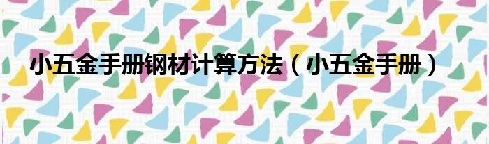 导读 大家好,今天小六子来为大家解答以下的问题,关于小五金手册钢材计算方法,小五金手册这个很多人还不知道,现在让我们一起来看看吧!1、 就