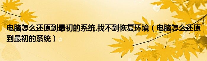 电脑怎么还原到最初的系统,找不到恢复环境(电脑怎么还原到最初的系统)
