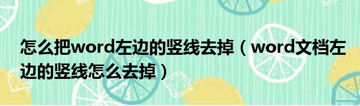 导读 大家好,今天小六子来为大家解答以下的问题,关于怎么把word左边的竖线去掉,word文档左边的竖线怎么去掉这个很多人还不知道,现在让我们一