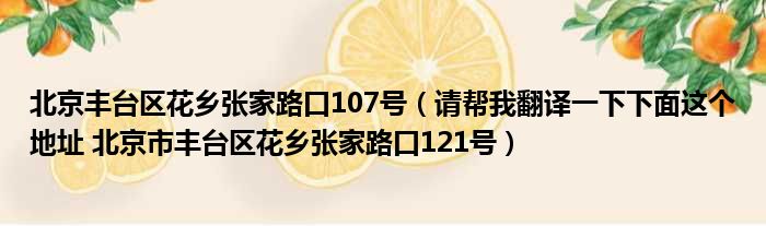 北京丰台区花乡张家路口107号(请帮我翻译一下下面这个地址 北京市丰台区花乡张家路口121号)