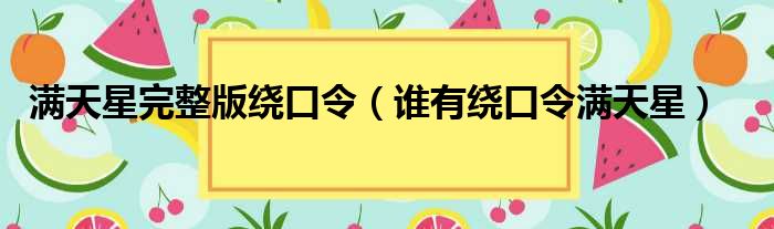 导读 大家好,今天小六子来为大家解答以下的问题,关于满天星完整版绕口令,谁有绕口令满天星这个很多人还不知道,现在让我们一起来看看吧!1、满