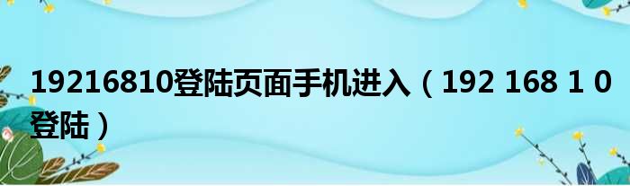 导读 大家好,今天小六子来为大家解答以下的问题,关于19216810登陆页面手机进入,192 168 1 0登陆这个很多人还不知道,现在让我们一起来看看