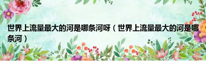 导读 大家好,今天小六子来为大家解答以下的问题,关于世界上流量最大的河是哪条河呀,世界上流量最大的河是哪条河这个很多人还不知道,现在让我