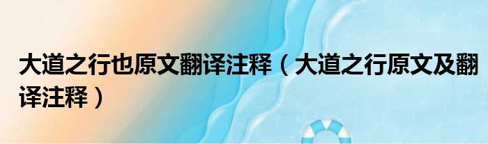 大道之行也原文翻译注释(大道之行原文及翻译注释)