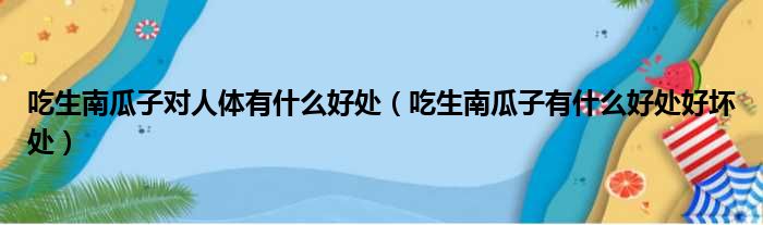 大家好,今天小六子来为大家解答以下的问题,关于吃生南瓜子对人体有什么好处,吃生南瓜子有什么好处好坏处这个很多人还不知道,现在让我们一起来看看吧!
