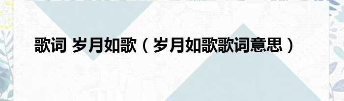 大家好,今天小六子来为大家解答以下的问题,关于歌词 岁月如歌,岁月如歌歌词意思这个很多人还不知道,现在让我们一起来看看吧!