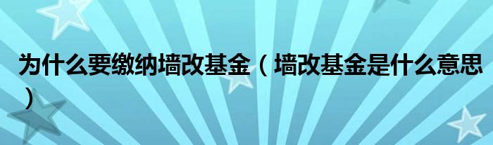 为什么要缴纳墙改基金(墙改基金是什么意思)