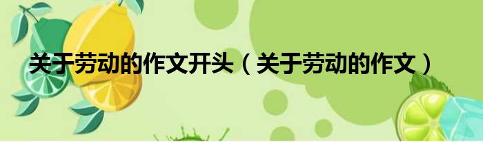 大家好,今天小六子来为大家解答以下的问题,关于关于劳动的作文开头,关于劳动的作文这个很多人还不知道,现在让我们一起来看看吧!