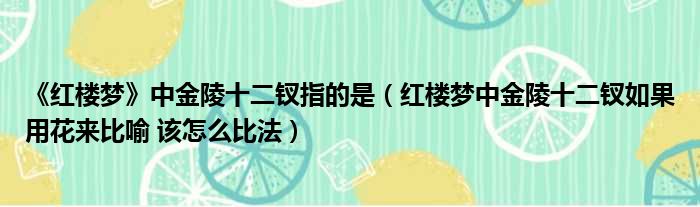 《红楼梦》中金陵十二钗指的是(红楼梦中金陵十二钗如果用花来比喻 该怎么比法)