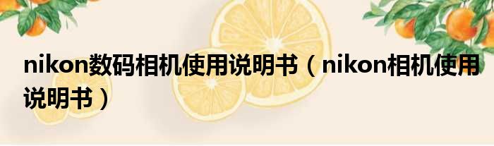 nikon数码相机使用说明书(nikon相机使用说明书)