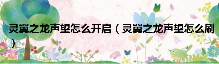 灵翼之龙声望怎么开启(灵翼之龙声望怎么刷)