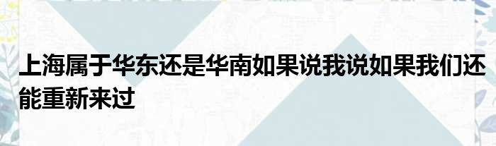 上海属于华东还是华南如果说我说如果我们还能重新来过