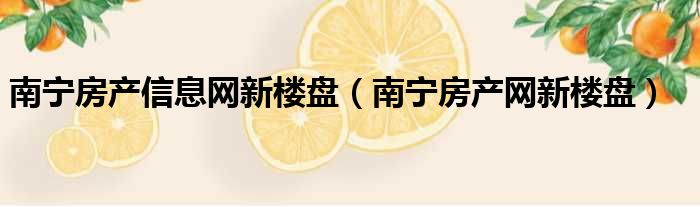 南宁房产信息网新楼盘(南宁房产网新楼盘)