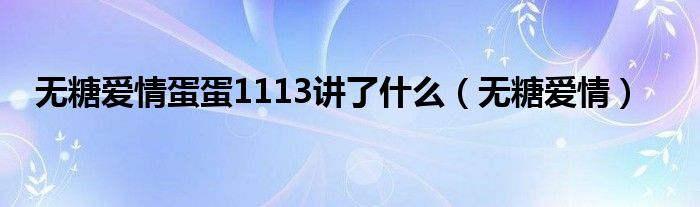 大家好,今天小六子来为大家解答以下的问题,关于无糖爱情蛋蛋1113讲了什么,无糖爱情这个很多人还不知道,现在让我们一起来看看吧!