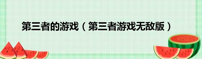 大家好,今天小六子来为大家解答以下的问题,关于第三者的游戏,第三者游戏无敌版这个很多人还不知道,现在让我们一起来看看吧!