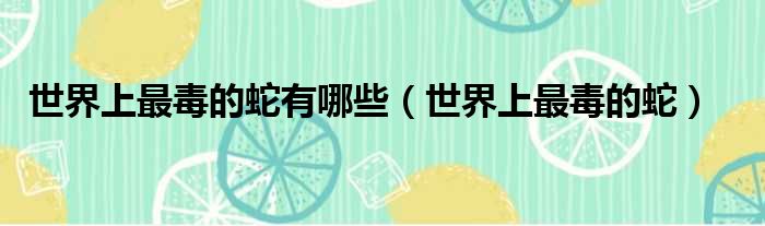 世界上最毒的蛇有哪些(世界上最毒的蛇)