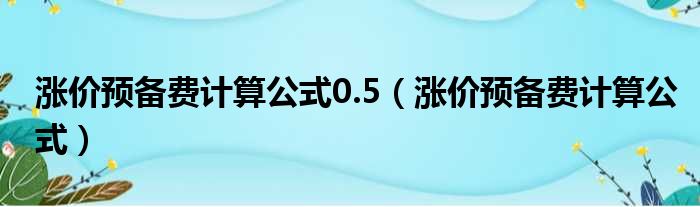 导读 大家好,今天小六子来为大家解答以下的问题,关于涨价预备费计算公式0 5,涨价预备费计算公式这个很多人还不知道,现在让我们一起来看看吧!