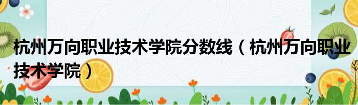 杭州万向职业技术学院分数线(杭州万向职业技术学院)