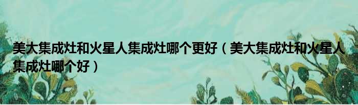 美大集成灶和火星人集成灶哪个更好(美大集成灶和火星人集成灶哪个好)