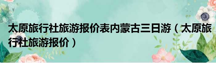 导读 大家好,今天小六子来为大家解答以下的问题,关于太原旅行社旅游报价表内蒙古三日游,太原旅行社旅游报价这个很多人还不知道,现在让我们一