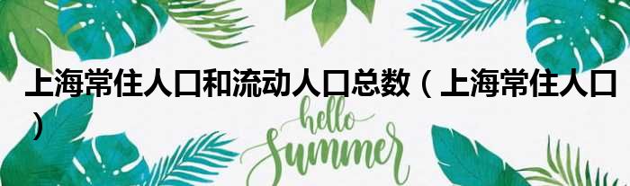 导读 大家好,今天小六子来为大家解答以下的问题,关于上海常住人口和流动人口总数,上海常住人口这个很多人还不知道,现在让我们一起来看看吧!1