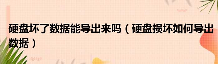 硬盘坏了数据能导出来吗(硬盘损坏如何导出数据)