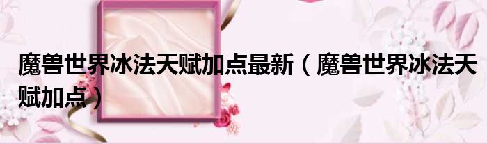 魔兽世界冰法天赋加点最新(魔兽世界冰法天赋加点)