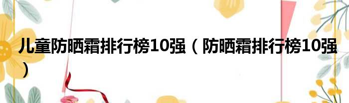 儿童防晒霜排行榜10强(防晒霜排行榜10强)