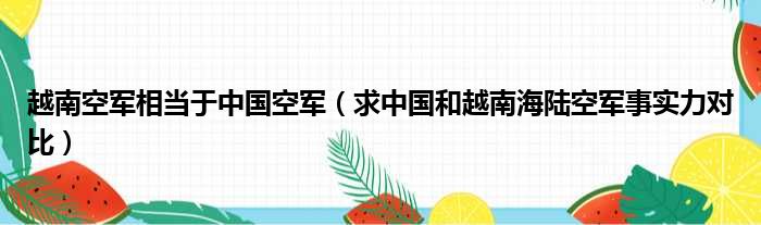 导读 大家好,今天小六子来为大家解答以下的问题,关于越南空军相当于中国空军,求中国和越南海陆空军事实力对比这个很多人还不知道,现在让我们