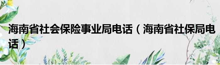 导读 大家好,今天小六子来为大家解答以下的问题,关于海南省社会保险事业局电话,海南省社保局电话这个很多人还不知道,现在让我们一起来看看吧
