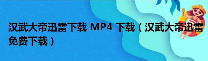 导读 大家好,今天小六子来为大家解答以下的问题,关于汉武大帝迅雷下载 MP4 下载,汉武大帝迅雷免费下载这个很多人还不知道,现在让我们一起来