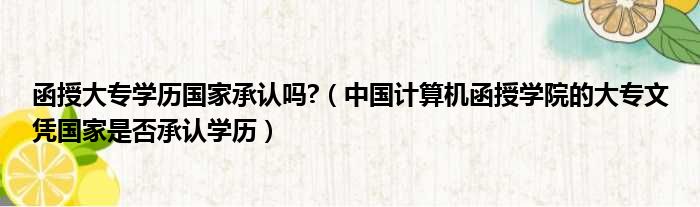 函授大专学历国家承认吗?(中国计算机函授学院的大专文凭国家是否承认学历)
