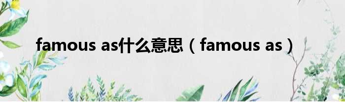 导读 大家好,今天小六子来为大家解答以下的问题,关于famous as什么意思,famous as这个很多人还不知道,现在让我们一起来看看吧!1、be famo