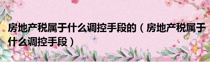 房地产税属于什么调控手段的(房地产税属于什么调控手段)