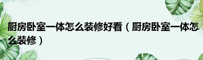 厨房卧室一体怎么装修好看(厨房卧室一体怎么装修)