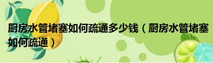 厨房水管堵塞如何疏通多少钱(厨房水管堵塞如何疏通)