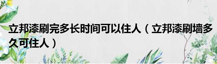 立邦漆刷完多长时间可以住人(立邦漆刷墙多久可住人)