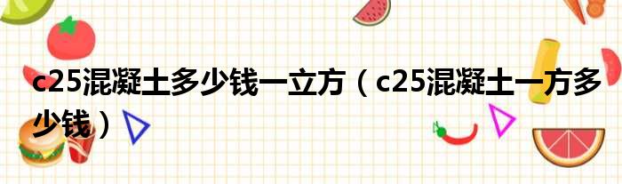 关于c25混凝土一方多少钱的相关内容就介绍这么多,希望对大家有所帮助。