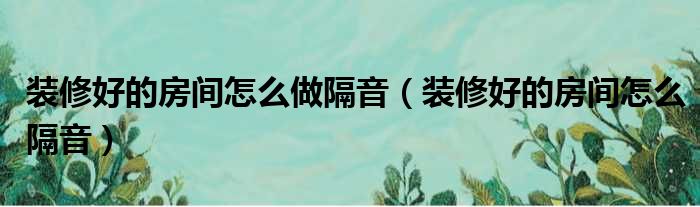 装修好的房间怎么做隔音(装修好的房间怎么隔音)