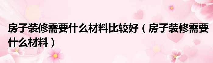 房子装修需要什么材料比较好(房子装修需要什么材料)