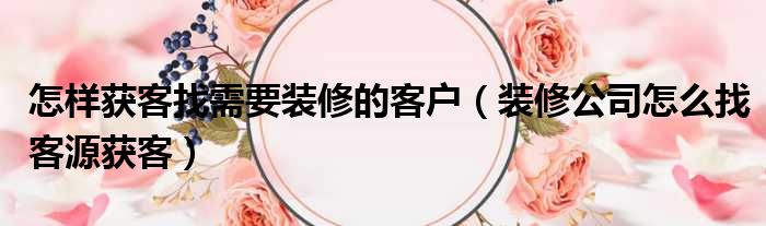 怎样获客找需要装修的客户(装修公司怎么找客源获客)
